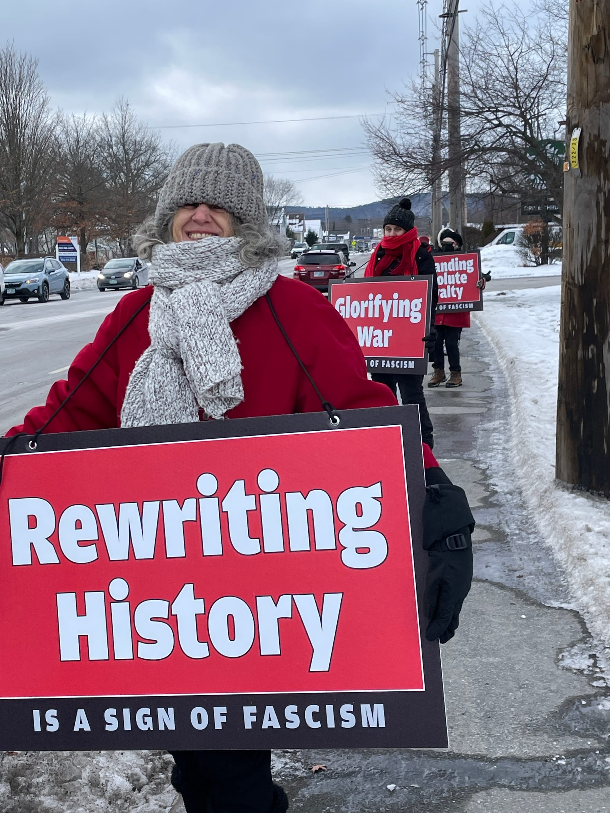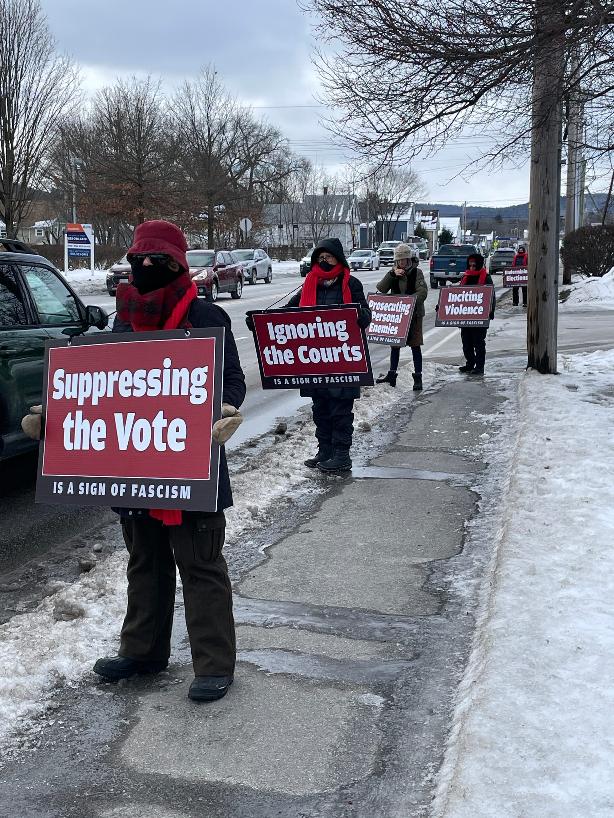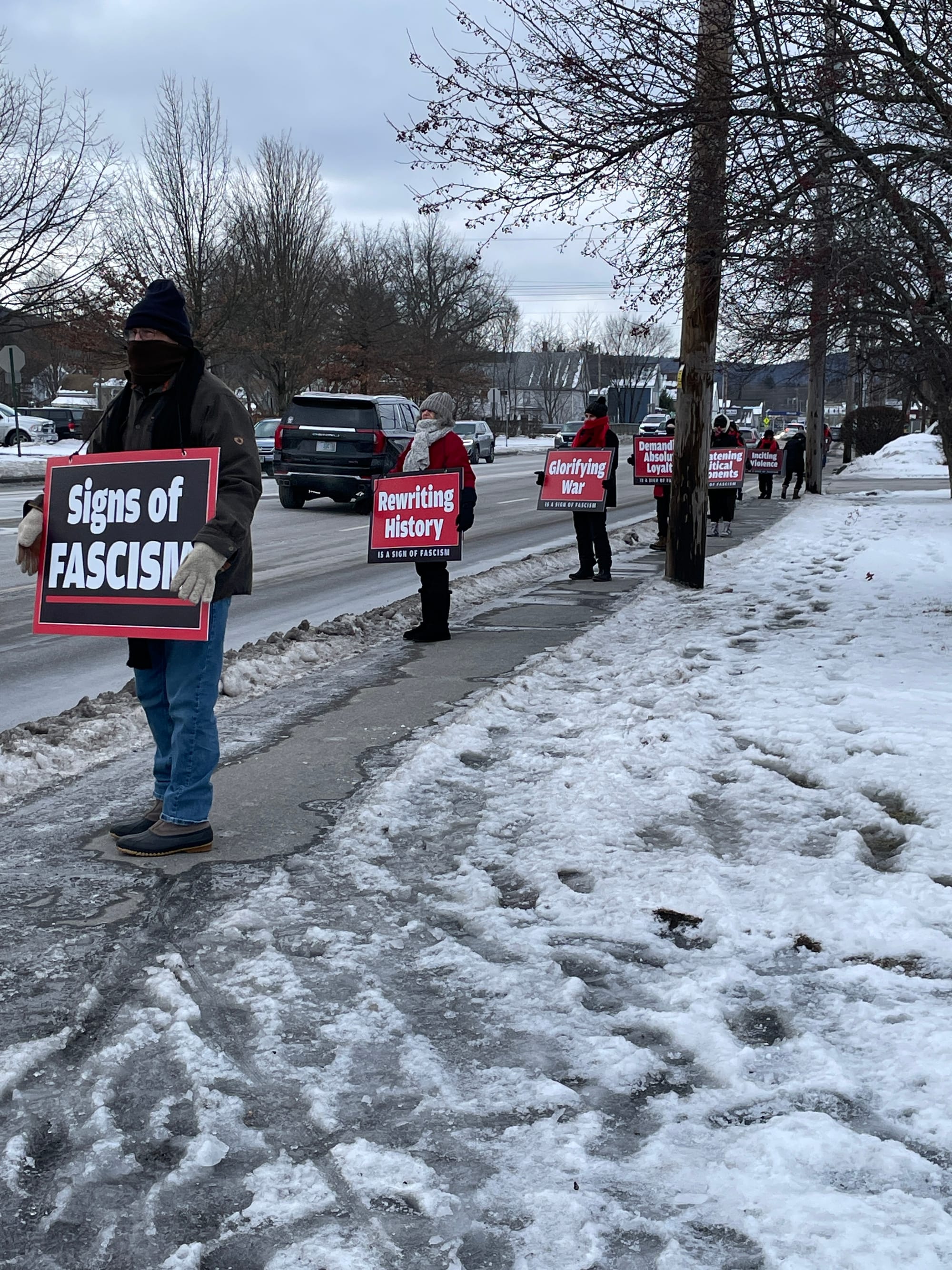 2/7/2026Time 3:00PM meet up a 101/202 intersection in Peterborough (park in Peterborough Plaza) to hold a Sign of Fascism (or your own sign) for 30 minutes... then we will POP to Jaffrey NH in front of RiteAid. Wear warm clothes of either Red or Black if possible. We will have red and black scarves to lend to those holding the large printed signs. Come join us to help educate people about Fascism, and its connection to this administration's actions.